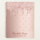 A rose gold background with elegant faux rose gold glitter drips, paint dripping look. Personalise and add your monogram initials, name and a title/year. Your monogram initials as a pattern on the background.