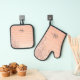 Rose Gold Glitter Drips Striped Oven Mitt & Pot Holder Set