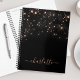 Create your own personalised black and rose gold diamond sparkle planner with your custom modern handwritten script name.
