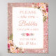 Rose Gold Glitter Floral Please Take Bubbles Sign