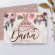 Modern floral Quinceañera Dama Proposal Invitation. Design featuring rose gold gown, floral elements on a bright pearl background and faux rose gold glitter on the back. Personalize with a name.