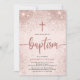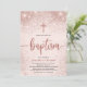 Rose Gold Glitter Girl Baptism Photo Invitation