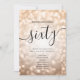 Elegant Glam Rose Gold Glitter Lights 60th Birthday Script template featuring party program and menu text, glitter lights and modern typography script.