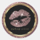 Rose Gold Glitter Lips with Gold Font Classic Round Sticker