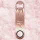 This bottle opener is absolutely perfect. As a bartender most bottle openers aren’t coated and this can cut your hands up. This opener is coated and so smooth that it is easy to grip out of my back pocket and I don’t have to worry about the metal edges cutting my hands or pockets. I love the design. Rose Gold is my favorite color and the sparkle isn’t real glitter so it doesn’t get every where.