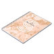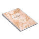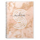 Rose gold glitter marble notebook with black script name and large white monogram.