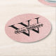 Rose Gold Glitter Monogram | Girly Modern Sparkle Round Paper Coaster