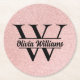 Add a touch of sparkle to your home or office with our Rose Gold Glitter Monogram | Girly Modern Sparkle Round Paper Coaster. This fun and stylish coaster features a modern rose gold glitter colour scheme and a personalised monogram, making it the perfect accessory to protect your surfaces.
