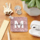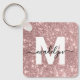 This cute square keychain brings a fun and modern touch to your everyday essentials. The design features a bold white monogram initial centred on a faux rose gold glitter background with soft blush pink hues blended in, giving it a dreamy and feminine vibe. Your name is displayed across the monogram in elegant black script. The same stylish design appears on both sides for a polished, cohesive look.