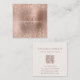 Rose Gold Glitter Monogram Logo Square Business Card... Your monogram logo takes its colours from the metallic rose gold foil and sparkly blush glitter of the background, creating a chic, luxe look for your trendy square business card. You can easily change the monogram initial and name on the personalisation template. On back of the card are your name and title plus all the ways customers can reach you, including a QR code you can create easily right on the same template as the text. Additional business items are available in the same design.
