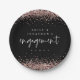 Rose Gold Glitter Names Engagement Party Black Paper Plate