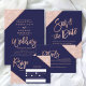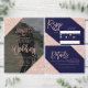Rose Gold glitter side colour block typography on customisable navy blue and faux rose gold geometric stripes chic wedding , perfect for elegant, luxurious wedding,