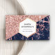 Rose Gold Glitter Navy Blue Marble Makeup Artist Business Card