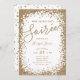 Stylish new year's eve invitation featuring faux gold glitter confetti frame with a modern type layout and matching pattern on the back.