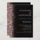 Rose Gold Faux Glitter on Black QR Code Wedding Invitation.