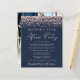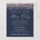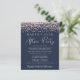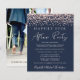 Budget-friendly dark navy blue elopement or private wedding announcement and wedding reception invitation. The front features rose gold faux glitter confetti and "Happily Ever After Party" in a mix of light rose gold typography and a chic, modern rose gold script. Personalise your announcement and invitation and add your names in a signature-like script. The reverse side features your wedding photo, first names and wedding date.