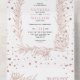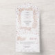 Rose gold glitter pine and confetti winter wedding all in one invitation