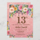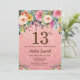 Rose Gold Glitter Pink Floral 13th Birthday Invitation