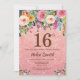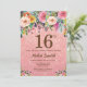 Rose Gold Glitter Pink Floral 16th Birthday Invitation