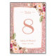 Rose Gold Glitter Pink Floral Wedding Table Number