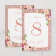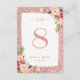 Rose Gold Glitter Pink Floral Wedding Table Number Card.