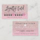 Elegant light rose gold glitter sparkles candy pink script makeup hair pink heart loyalty card with modern hand lettering style brush typography on white , a simple, professional and minimalist card. offer 10 treatments and discount to your customers.