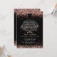 The dramatic black background paired with shimmering rose gold accents creates a bold yet refined look—ideal for a chic, luxury Quinceañera celebration. Designed for those who love timeless glamour, this invitation sets the tone for a magical and memorable 15th birthday celebration.