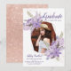 Rose gold glitter purple floral photo graduation invitation