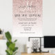 Girly Rose Gold Glitter "We're Open" Makeup and Hair Salon COVID Safe Announcement. Salon reopening design with blush pink rose gold glitter, white ombre background and a monogram logo template design that you can customize. ©Elke Clarke. Personalize this custom design with your own text, and business details. Has the standard text to tell your customers that your business is safe to visit. "With new COVID19 safety measures in place to keep our clients and employees safe."
