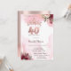 Elegant glitter crown and flowers on rose gold glitter ombre party invitation.