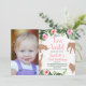 Sweet girl's safari animals themed birthday invitation featuring four faux rose gold glitter jungle animals, some tropical foliage and flowers. Great as a girl's two wild invitation but can be used for other ages as well. Same design is also available without a photo.