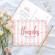 Make sure your favourite grad shows her appreciation to all who supported her milestone event! Send out this stunning, modern, sparkly rose gold typography script and glitter confetti dots against a dusty pink and white striped background, custom thank you postcard. On the front, personalise with your grad’s name and class year. Type a custom note and return address on the back. Guaranteed to add a stylish touch to her correspondence! Matching invites, return address labels, paper plates, napkins and other graduation goodies are also available in this trendy and special collection.