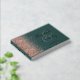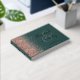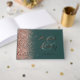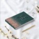 This elegant wedding guest book features a rose gold faux glitter border on a dark emerald green background. Easily customise the real rose gold foil text, with the names of the couple in whimsical handwriting calligraphy over a large ampersand. Add additional text of your choice to the front and spine.
