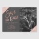 Rose Gold typography on customisable dark grey rose gold glitter colour block, and faux rose gold geometric stripes chic save the date wedding , perfect for elegant, stylish wedding,
