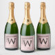 Rose Gold Glitter Script Monogram Sparkling Wine Label
