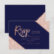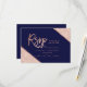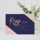 Rose Gold typography on customisable navy blue rose gold glitter colour block, and faux rose gold geometric stripes chic rsvp wedding , perfect for elegant, stylish wedding,