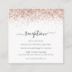 Rose Gold Glitter Script Wedding Reception Details. A handy mini size to pop in with your invitations to let guests know reception details, this design has an elegant script with swashes for the main header. Easily personalise all the text. A border of faux glitter in rose gold is at the top on each side.