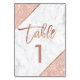 rose Gold typography on white marble rose gold glitter colour block, and faux rose gold geometric stripes chic table number wedding , perfect for elegant, beach wedding,