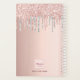 A faux rose gold background with elegant rose gold, pink and faux silver glitter drips, paint dripping look. Template for a year. Personalise and add a name and a title. The name is written in dark rose gold with a modern hand lettered style script. Perfect for business, school, diary, work or organising your personal/family life.