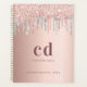 A rose gold background with elegant rose gold, pink and faux silver glitter drips, paint dripping look.  Personalise and add your monogram initials, name and a year.