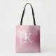 Chic, girly rose gold and pink faux glitter and glitter drip brushed metal design tote bag with monogram and handwritten script name with extra sparkle on the name. Cute and girly tote bag can be personalised with an initial and name and makes a unique gift for her birthday, bridal shower, Sweet 16, bachelorette party or wedding gift for the trendy woman or girl you know. Contact the designer via Zazzle Chat or makeitaboutyoustore@gmail.com if you'd like this design modified, on another product or would like coordinating items.