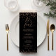 This goregous menu card features rose gold sparkle discs on black background. For more advanced customisation of this design, e.g. changing layout, font or text size please click the "CUSTOMIZE" button above. Please contact me for any questions!