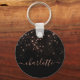 Create your own personalized black and rose gold diamond sparkle keychain with your custom modern handwritten script name.