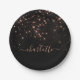 Create your own personalised black and rose gold diamond sparkle paper plate with your custom modern handwritten script name.
