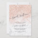 A modern typography, pretty chic and elegant faux rose gold glitter shower ombre with white marble colour block Sweet 16 birthday party invitation .