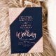 Rose Gold glitter color block typography on customizable navy blue and faux rose gold geometric stripes chic wedding , perfect for elegant, luxurious wedding,