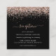 Rose Gold Glitter Script Wedding Black Reception Details. A handy mini size to pop in with your invitations to let guests know reception details, this design has an elegant script with swashes for the main header. Easily personalise all the text. A border of faux glitter in rose gold is at the top on each side.
