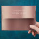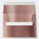 This is an elegant glam rose gold wedding invitation envelope, with faux metallic foil background, and rose gold glitter framing the address area. The return address is on the front flap. Find the rest of the invitation suite and more in the matching collection.