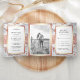 I loved working with Zazzle start to finish. I was able to edit the invitation with the colors and even change some of the layout to create the exact invitation we wanted. We had pictures, added our story, and even used the back for a fun sequence going in for a kiss. When we submitted the purchase they looked over the document, had us correct some things due to a licensing issue, and when all was cleared the process began. Then we had an issue come up that needed us to change the date. Luckily the printing hadn't happened yet so we were able to cancel the order and reissue the card. When we got it we were very impressed! High quality paper and finish, and everything looked great. We would definitely recommend this company and this product! The finished product was amazing! Very high quality!
