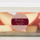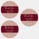 Rose gold glitter with burgundy wedding thank you label. The design features a rose gold glitter texture and a burgundy band in the middle. You can customise it with the wedding details.